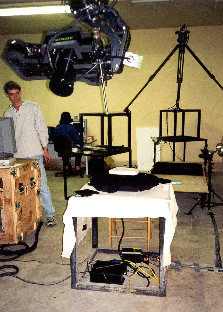 Each rock was placed on one of the two scanners' turntables. Here a fragment is being scanned by our big scanner.