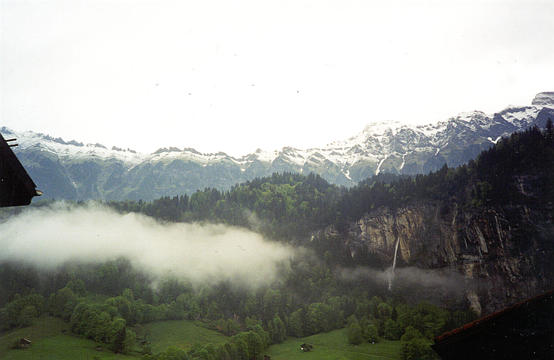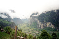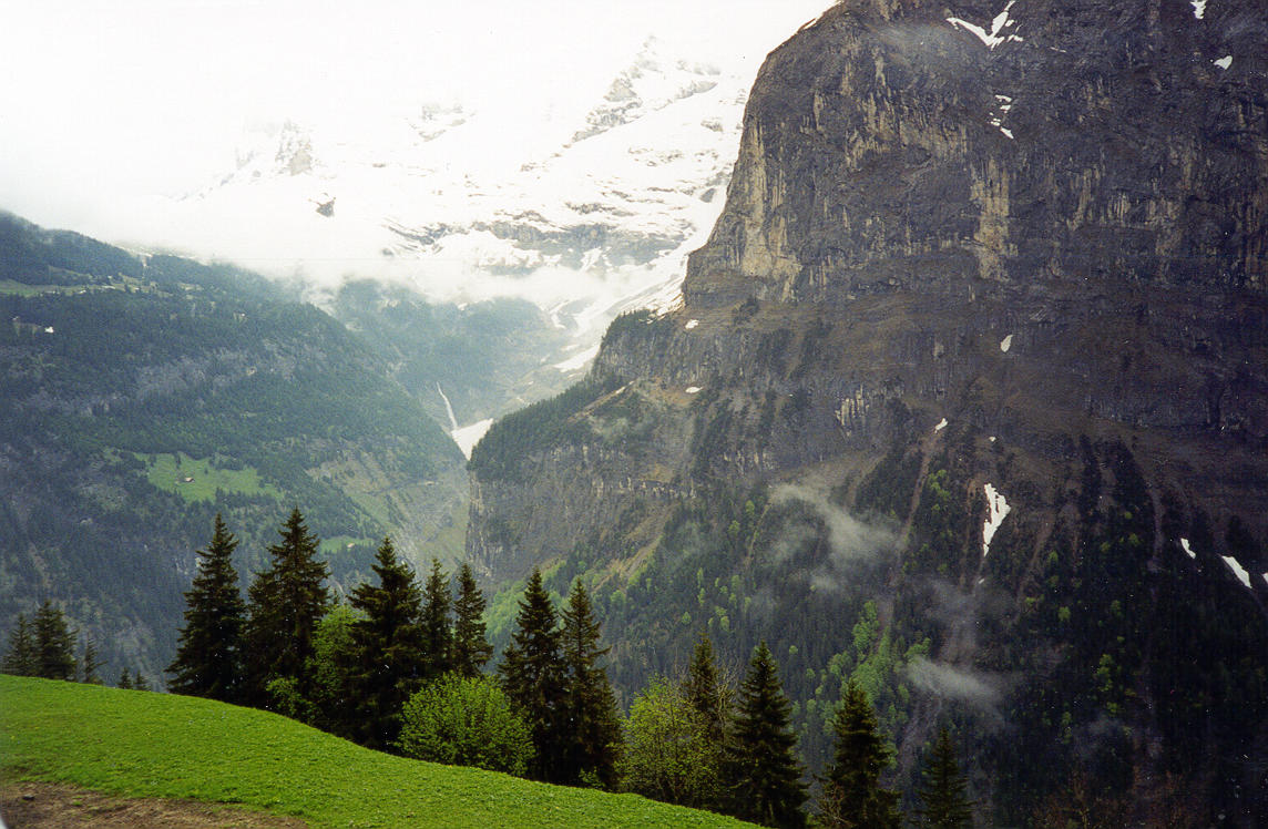 The next day, from the train on the way to Kleine Scheidegg, we saw Lauterbrunnen nestled in the valley below.
