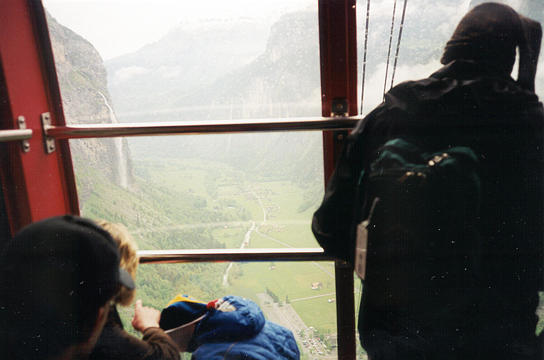 When our hike ended in Gimmelwald, we took the cablecar down to Stechelberg. Jonathan was pretty much plastered to the window. :-)