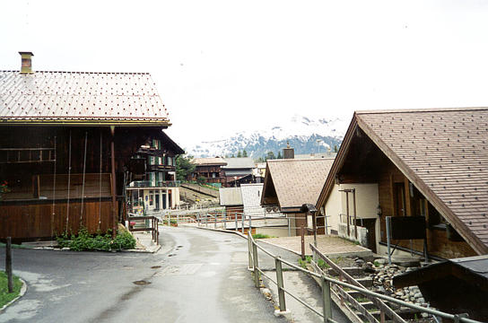 Our hike started with a special train that climbed up the steep hillside from Lauterbrunnen to Grutchalp (elev. 4900 feet). Then we got on a normal train that took us through Winteregg to Muren. This is Muren, where we stopped to warm up over a wonderful lunch.