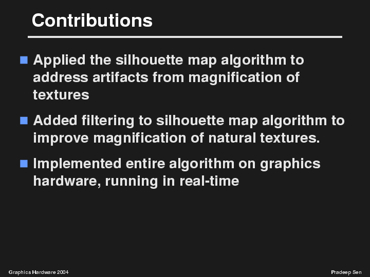 First of all, we observe that we can apply the silhouette map algorithm which was presented at last year's SIGGRAPH to the problem of texture magnification.