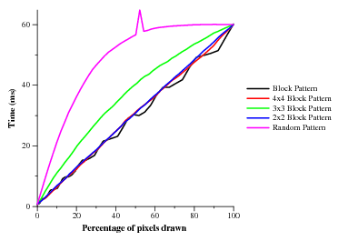 However, even once I correct the timing, the rasterization numbers are pretty good. They're pretty much a direct function of the number of triangles in the scene (no surprise since I shove all the primitives in a vertex array and dump them on the board). I've done some timing with and without GL_LIGHTING enabled. Without it, the cbox manages over 1350 fps down to 95 fps for the kitchen. With lighting, cbox only drops to 1310 fps, but the kitchen drops to 64 fps. Those are all at 1024x1024. Messing around, performance is clearly dependent on resolution, but not in any simple way. 512x512 looks to be a bit of a sweet spot for this particularly board.